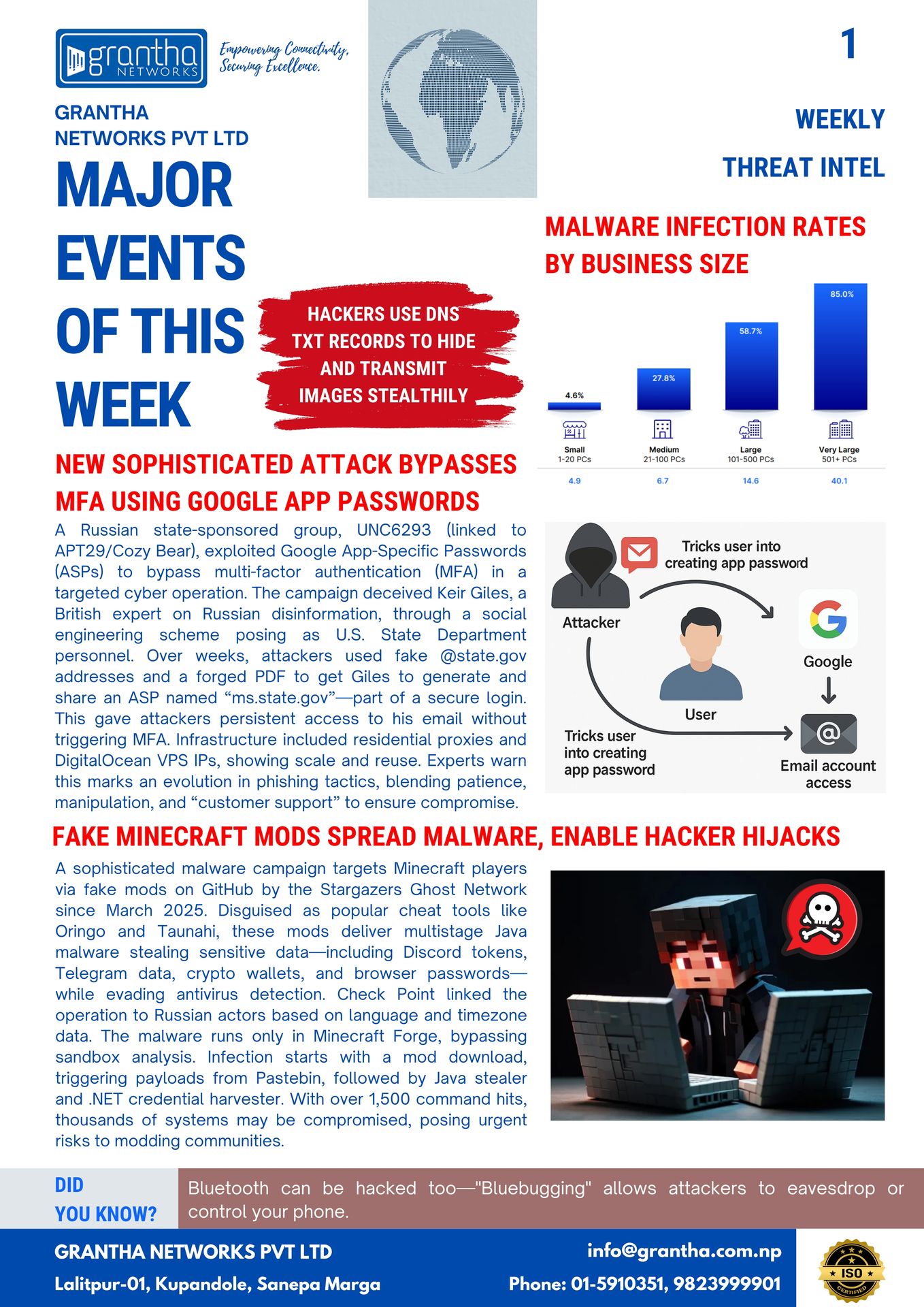 - Fake Minecraft mods spread malware enabling hacker hijacks; new sophisticated attacks bypass MFA using Google app passwords.