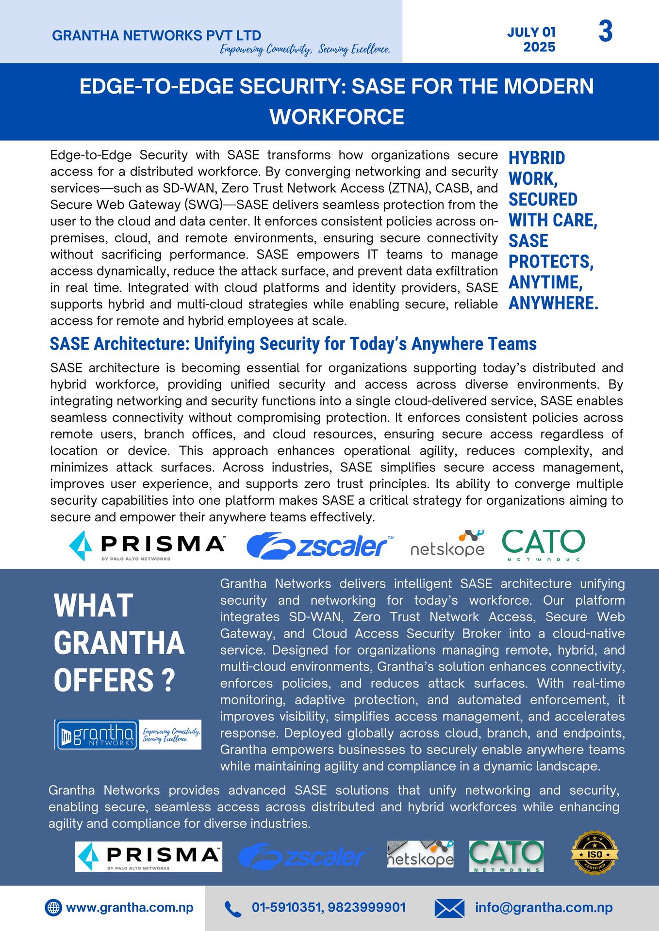 - Grantha Networks provides Edge-to-Edge Security with SASE for protecting hybrid workforces with secure access anytime, anywhere.