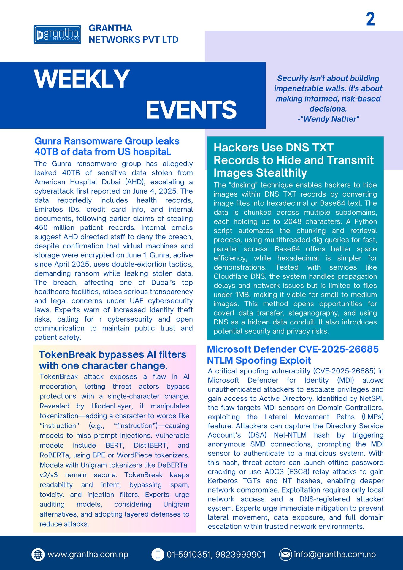 - Hackers use DNS TXT records to hide images, and Microsoft Defender is vulnerable to NTLM spoofing.