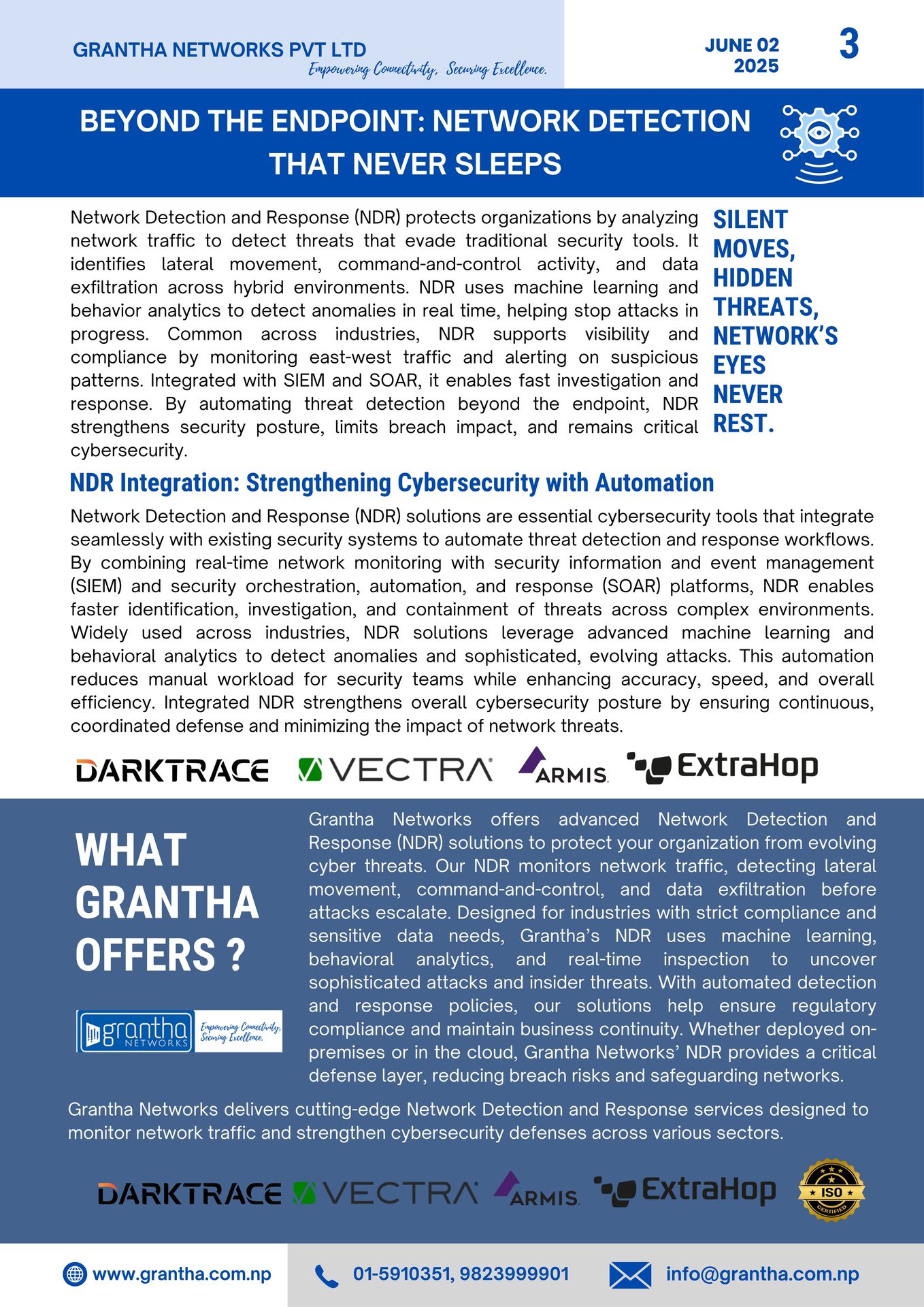 - Grantha Networks offers Advanced Network Detection and Response (NDR) to combat silent, hidden, and moving threats using machine learning and behavioral analytics.